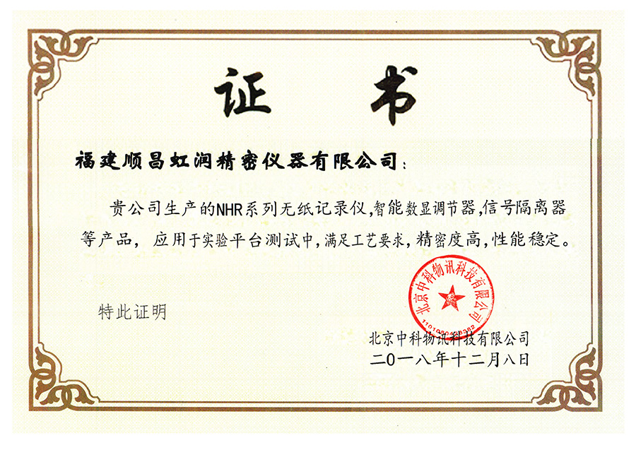 虹潤NHR係列無紙記錄儀、智能數顯調節器、信號隔離器等產品,成功應用於中國科學院科研實驗平台測試,滿足科研工藝要求,精密度高,產品性能穩定,得到了工程師們的一致好評。
