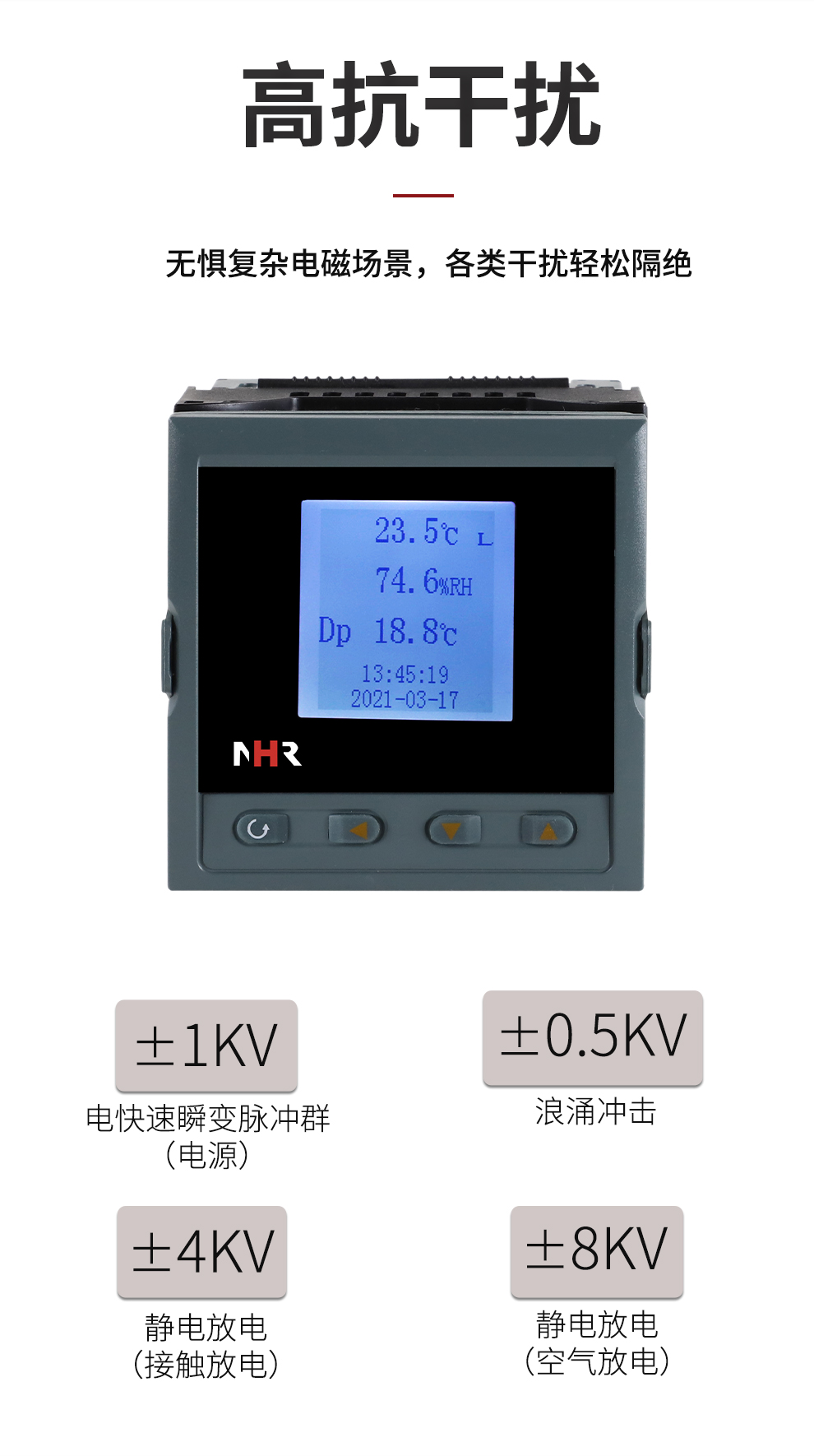 虹潤公司是專業生產環境監測儀表的國家專精特新“小巨人”企業。生產的盤裝式溫濕度控製器,具有溫度、濕度、露點高精準的測量,壁掛式結構,IP65防護穩定性強,高抗幹擾,帶RS485/RS232通訊輸出等級等特點。產品獲得一種手持式低功耗溫濕度檢測儀、大屏幕溫濕度記錄儀等2項國家發明專利,主持起草物聯網智能溫度儀表通用技術條件、冷鏈溫度記錄儀等2項國家標準,通信係統多通道數據采集控製終端規範軍用標準,以及現場設備集成等5項智能製造國家標準,參與國際5G標準製定,取得溫濕度儀表等2項相關軟件著作權。產品廣泛應用於工業現場、農業大棚、倉儲物流、地下管廊、養殖孵化、配電機房等諸多領域。