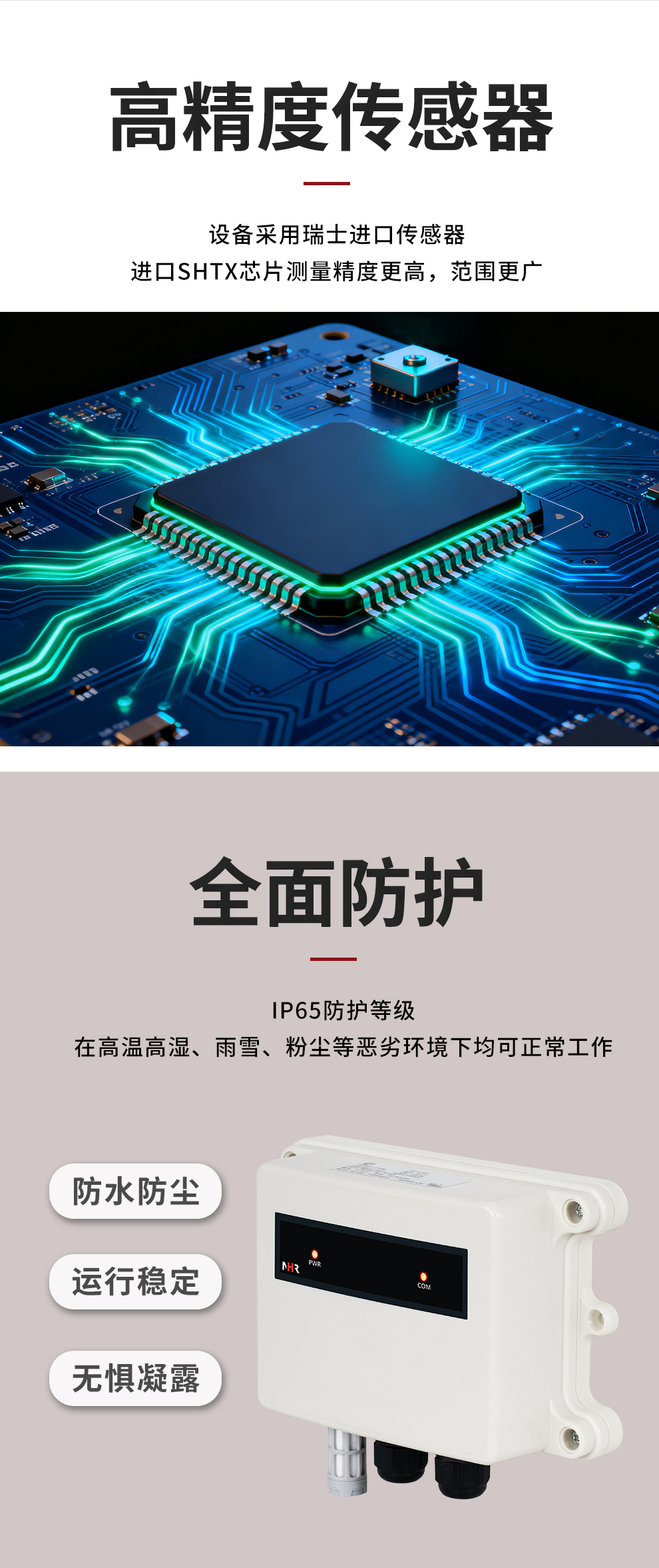 虹潤公司是專業生產環境監測儀表的國家專精特新“小巨人”企業。生產的一體式溫濕度變送器,具有溫度、濕度、露點高精準的測量與變送,報警繼電器輸出,RS485/RS232通訊,IP65防護等級等特點。產品獲得一種手持式低功耗溫濕度檢測儀、大屏幕溫濕度記錄儀等2項國家發明專利,主持起草物聯網智能溫度儀表通用技術條件、冷鏈溫度記錄儀等2項國家標準,以及通信係統多通道數據采集控製終端規範軍用標準,以及現場設備集成等5項智能製造國家標準,參與國際5G標準製定,取得溫濕度儀表等3項相關軟件著作權。產品廣泛應用於工業現場、農業大棚、倉儲物流、地下管廊、養殖孵化、配電機房等諸多領域。
