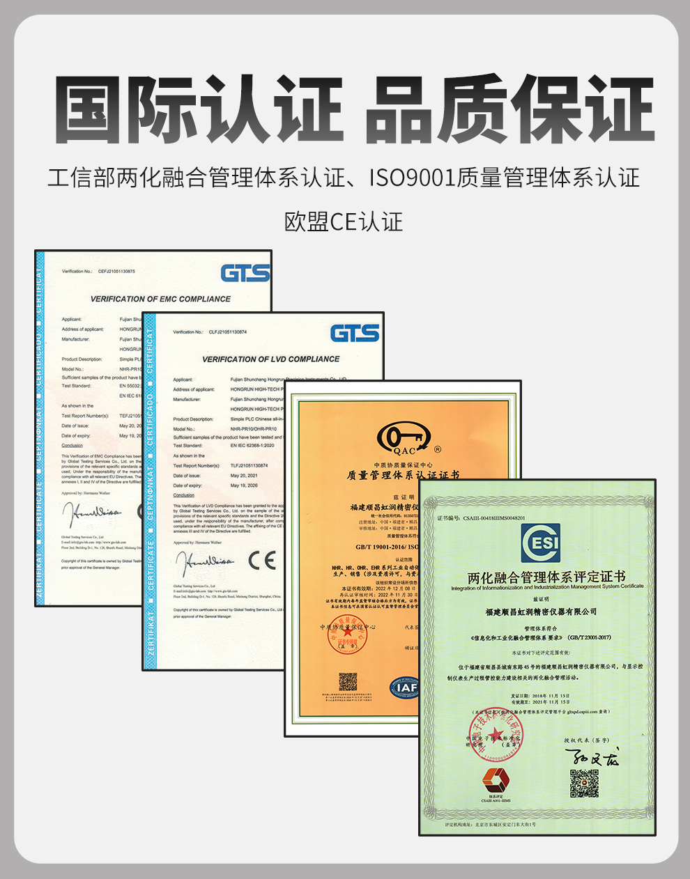 虹潤公司是專業生產PLC控製器的國家專精特新“小巨人”企業。生產的簡易PLC中文一體機,具有全中文編程,專業邏輯控製與時間控製,全隔離設計,遠程RS485通訊監測等特點。產品獲得智能化控製器、多通道可編程繼電器等2項國家發明專利;主持起草流程工業中電氣/儀表和控製係統的試車國家標準,通信係統多通道數據采集控製終端規範軍用標準,以及現場設備集成等5項智能製造國家標準,參與國際5G標準製定,取得中文可編程繼電器等2項相關軟件著作權。產品廣泛應用於實驗室、市政工程、農業養殖、包裝機械、食品行業、樓宇自控等諸多領域。