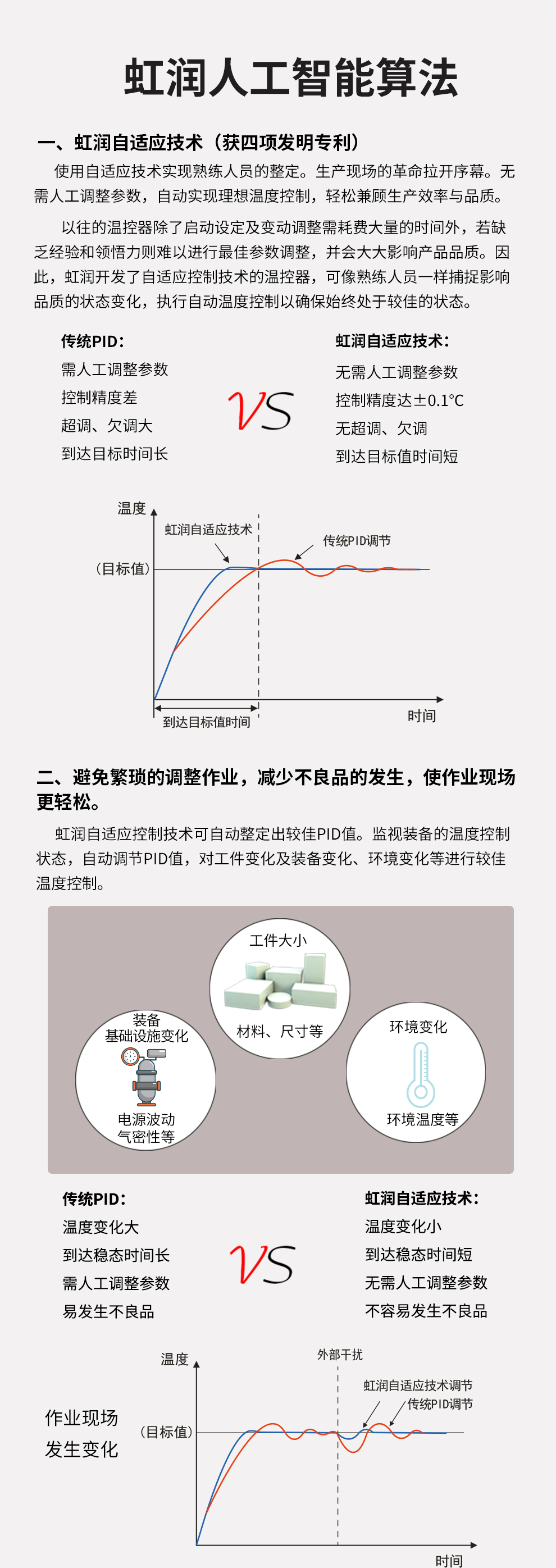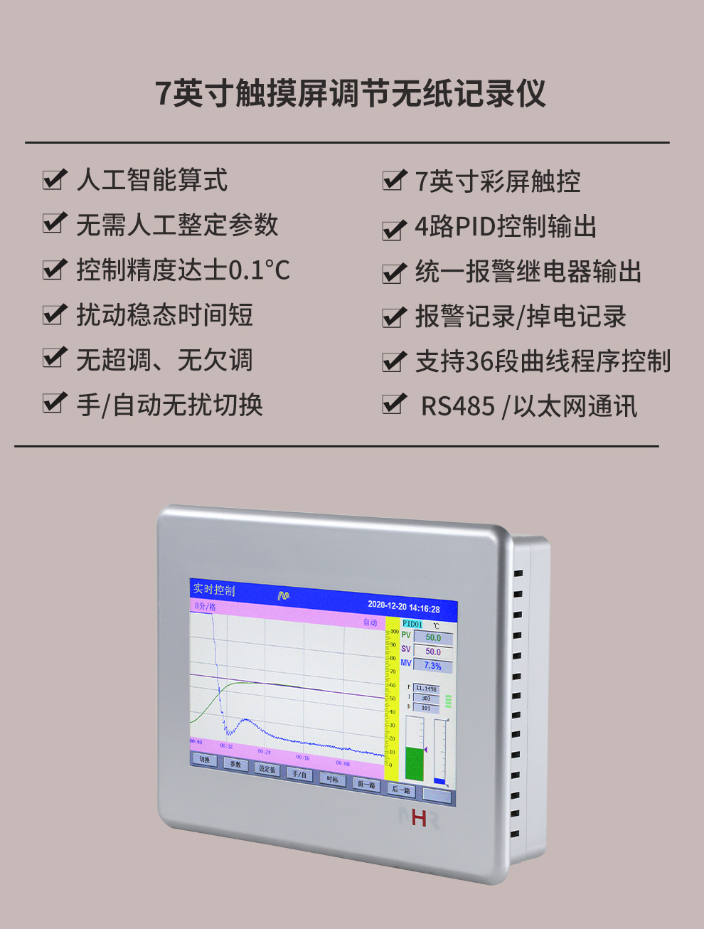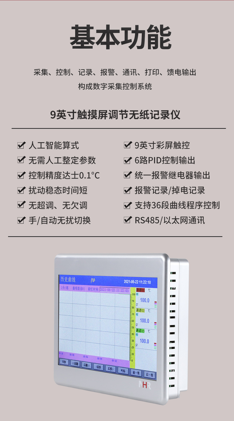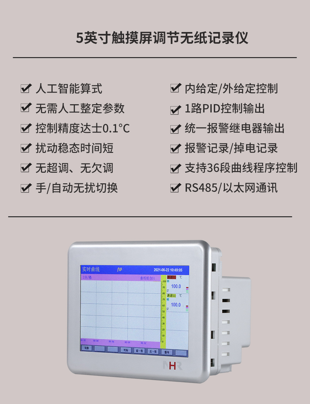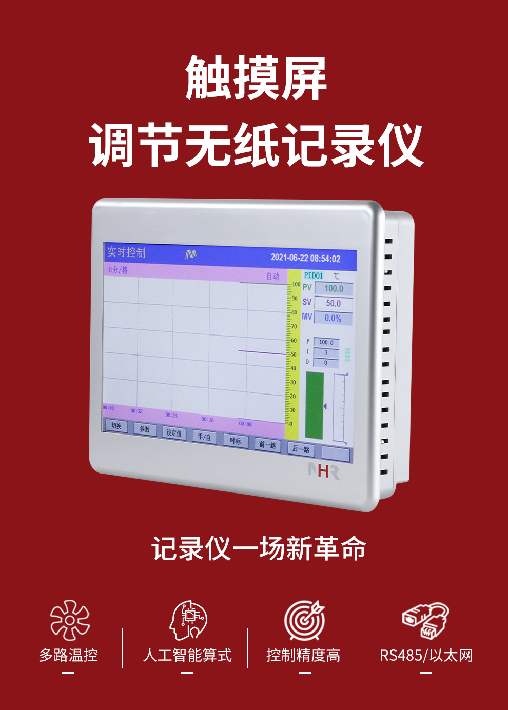 虹潤公司是專業生產無紙記錄儀的國家專精特新“小巨人”企業。生產的觸摸屏調節無紙記錄儀,具有觸摸大屏顯示,真正人工智能算式,無需人工整定參數,控製精度達士0.1°C,數據記錄與轉存, RS485/以太網通訊,5/7/9英寸可選等特點。產品獲得智能化控製器、人工智能調節器及調節方法、模糊PID控製儀及控製方法、平板無紙記錄儀、巡回檢測顯示方法及裝置等5項國家發明專利,主持起草物聯網智能記錄儀表通用技術條件、物聯網智能溫度儀表通用技術條件、工業過程測量和控製係統用智能調節器等3項國家標準,通信係統多通道數據采集控製終端規範軍用標準,以及空間數據與信息數據傳輸係統等2項航天標準,參與國際5G標準製定,取得觸摸屏彩色調節無紙記錄儀等3項相關軟件著作權。產品廣泛應用於電力、石化、冶金、化工、食品、製藥、熱處理、水處理、機械配套等諸多領域。