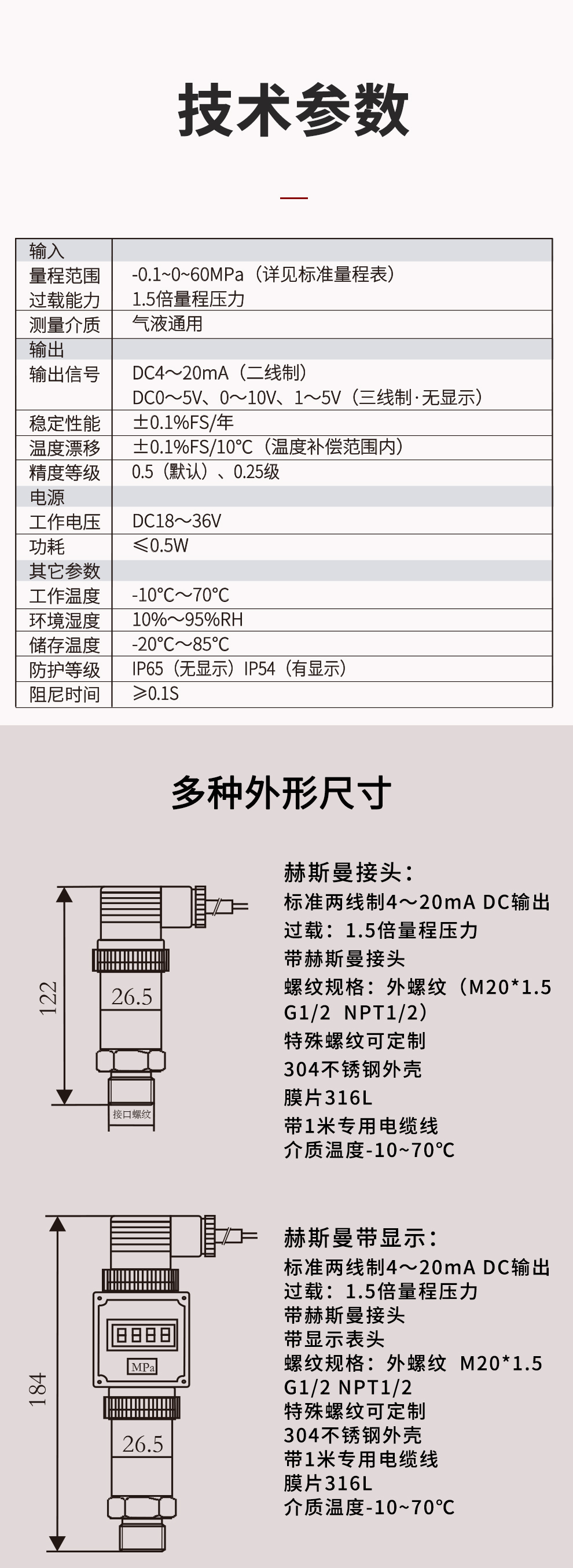 HR-M係列小巧型壓力變送器