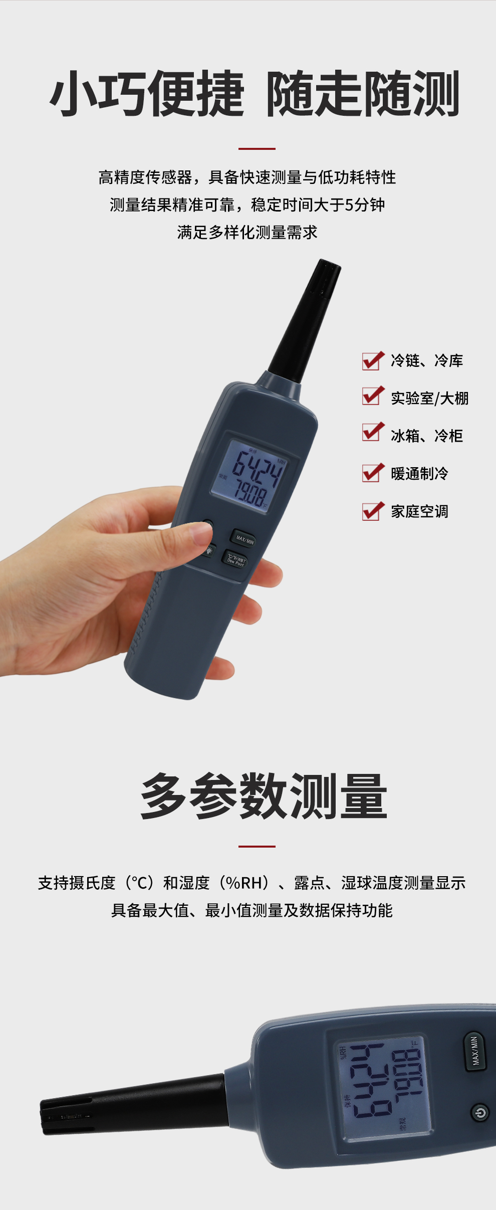 虹潤公司是專業生產環境監測儀表的國家專精特新“小巨人”企業。生產的手持式溫濕度檢測儀,具有測量精度高,多參數測量,最大最小值記錄,小巧便捷、低功耗省電設計等特點。產品獲得一種手持式低功耗溫濕度檢測儀、大屏幕溫濕度記錄儀等2項國家發明專利,主持起草物聯網智能溫度儀表通用技術條件、冷鏈溫度記錄儀等2項國家標準,以及通信係統多通道數據采集控製終端規範軍用標準,以及現場設備集成等5項智能製造國家標準,參與國際5G標準製定,取得環境溫濕度測試儀等3項相關軟件著作權。產品廣泛應用於實驗室、博物館、農業大棚、生產車間、倉庫、配電機房等諸多領域。