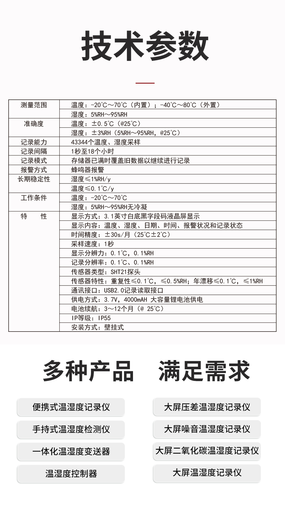 虹潤公司是專業生產環境監測儀表的國家專精特新“小巨人”企業。生產的便攜式溫濕度記錄儀,具有溫濕度記錄與轉存,手機充電電池,磁吸或壁掛安裝,故障報警提示,配上位機軟件等特點。產品獲得一種手持式低功耗溫濕度檢測儀、無紙記錄儀等2項國家發明專利,主持起草物聯網智能溫度儀表通用技術條件、冷鏈溫度記錄儀等2項國家標準,通信係統多通道數據采集控製終端規範軍用標準,以及現場設備集成等5項智能製造國家標準,參與國際5G標準製定,取得便攜式溫濕度記錄儀等3項相關軟件著作權。產品廣泛應用於冷鏈運輸、醫藥冷庫、藥品陰涼櫃、實驗室、機房倉庫、養殖孵化、大棚種植等諸多領域。