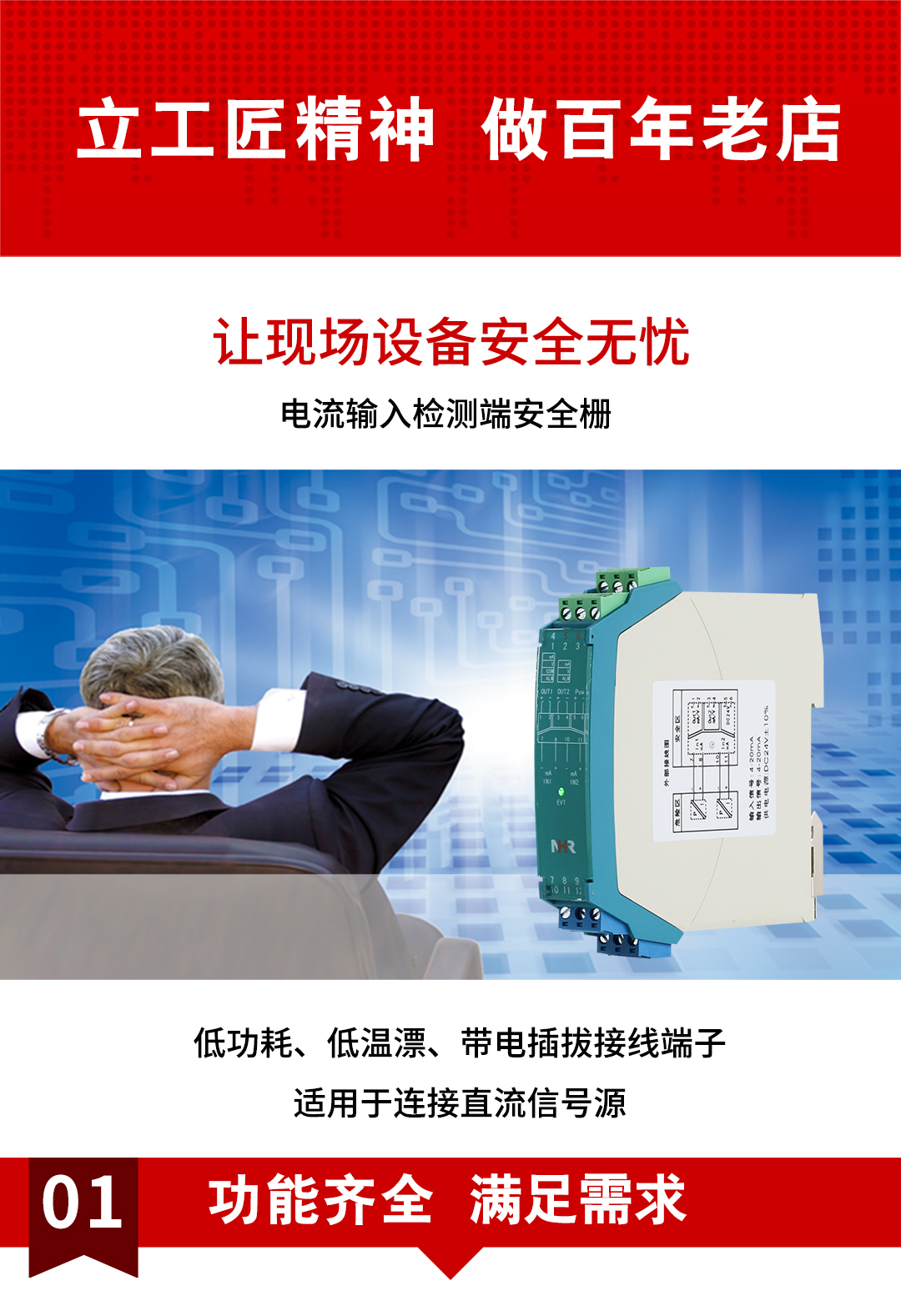 虹潤公司是專業生產隔離器的國家專精特新“小巨人”企業。生產的隔離式安全柵涵蓋信號電流輸入、電壓輸入、熱電阻輸入、熱電偶輸入、頻率輸入、開關量輸入等多種產品類型。產品獲得具備減震抗幹擾能力的溫度變送器、信號隔離器、一種二端子模塊、無源信號隔離器等4項國家發明專利,主持起草物聯網智能溫度儀表、現場設備工具(FDT)接口規範、工業過程測量和控製係統用溫度變送器等3項國家標準,以及通信係統多通道數據采集控製終端規範軍用標準。參與國際5G標準製定,取得智能隔離式安全柵等4項相關軟件著作權。產品廣泛應用於石油、電力、化工,冶金、智能製造、汙水處理等諸多行業。