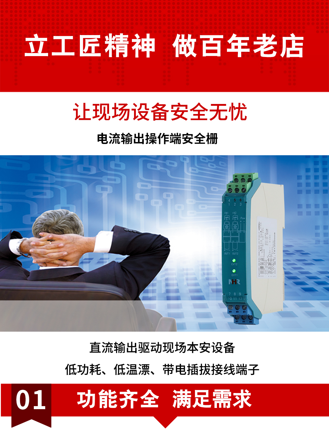 虹潤公司是專業生產隔離器的國家專精特新“小巨人”企業。生產的電壓/電流輸出操作端隔離柵涵蓋信號電壓輸入、電流輸入、開關量輸入等多種產品類型。產品獲得具備減震抗幹擾能力的溫度變送器、信號隔離器、一種二端子模塊、無源信號隔離器等4項國家發明專利,主持起草物聯網智能溫度儀表、現場設備工具(FDT)接口規範、工業過程測量和控製係統用溫度變送器等3項國家標準,以及通信係統多通道數據采集控製終端規範軍用標準。參與國際5G標準製定,取得智能隔離式安全柵等4項相關軟件著作權。產品廣泛應用於石油、電力、化工,冶金、智能製造、汙水處理等諸多行業。