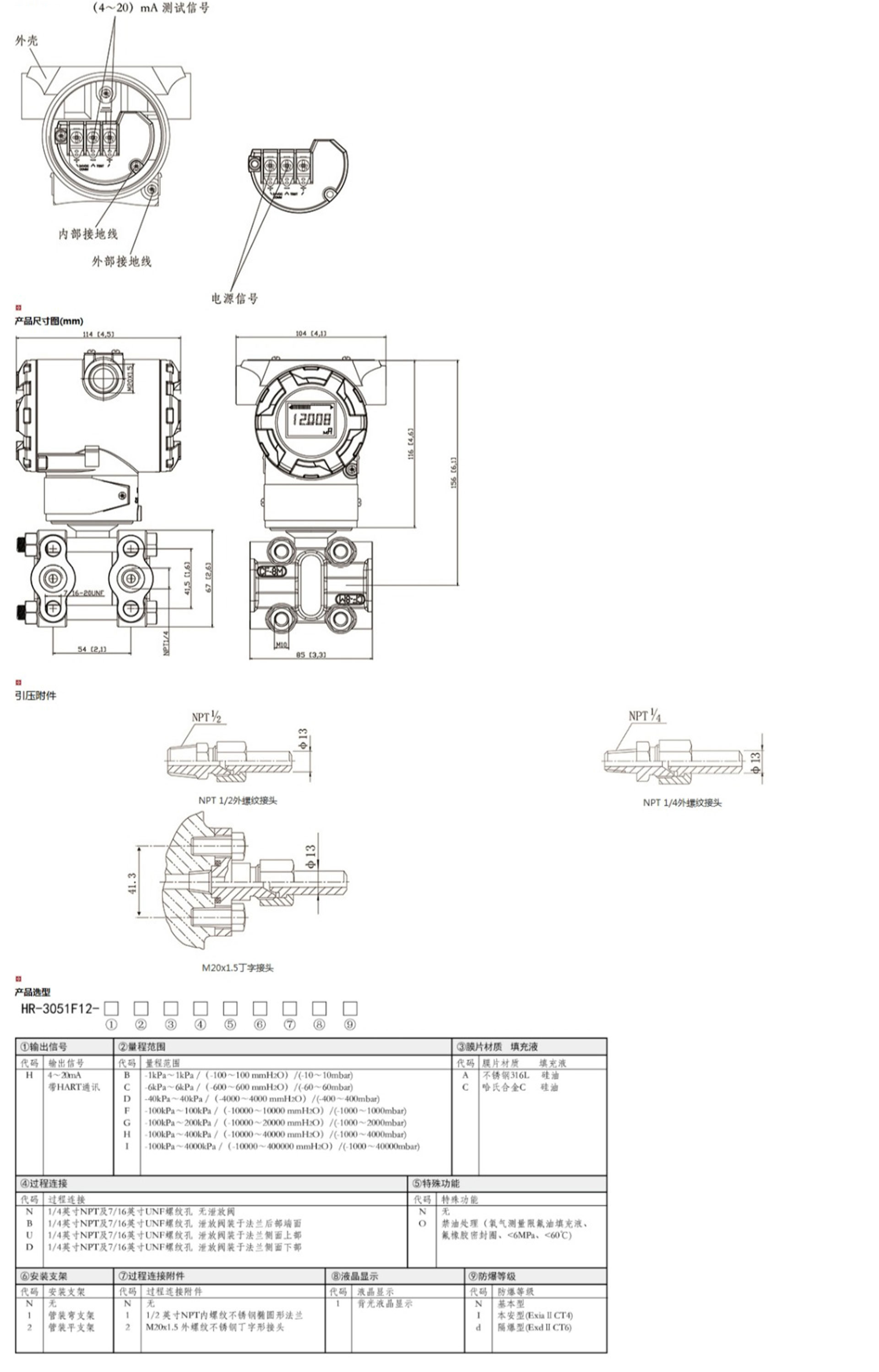 HR-3051F12智能單晶矽夾板式壓力變送器