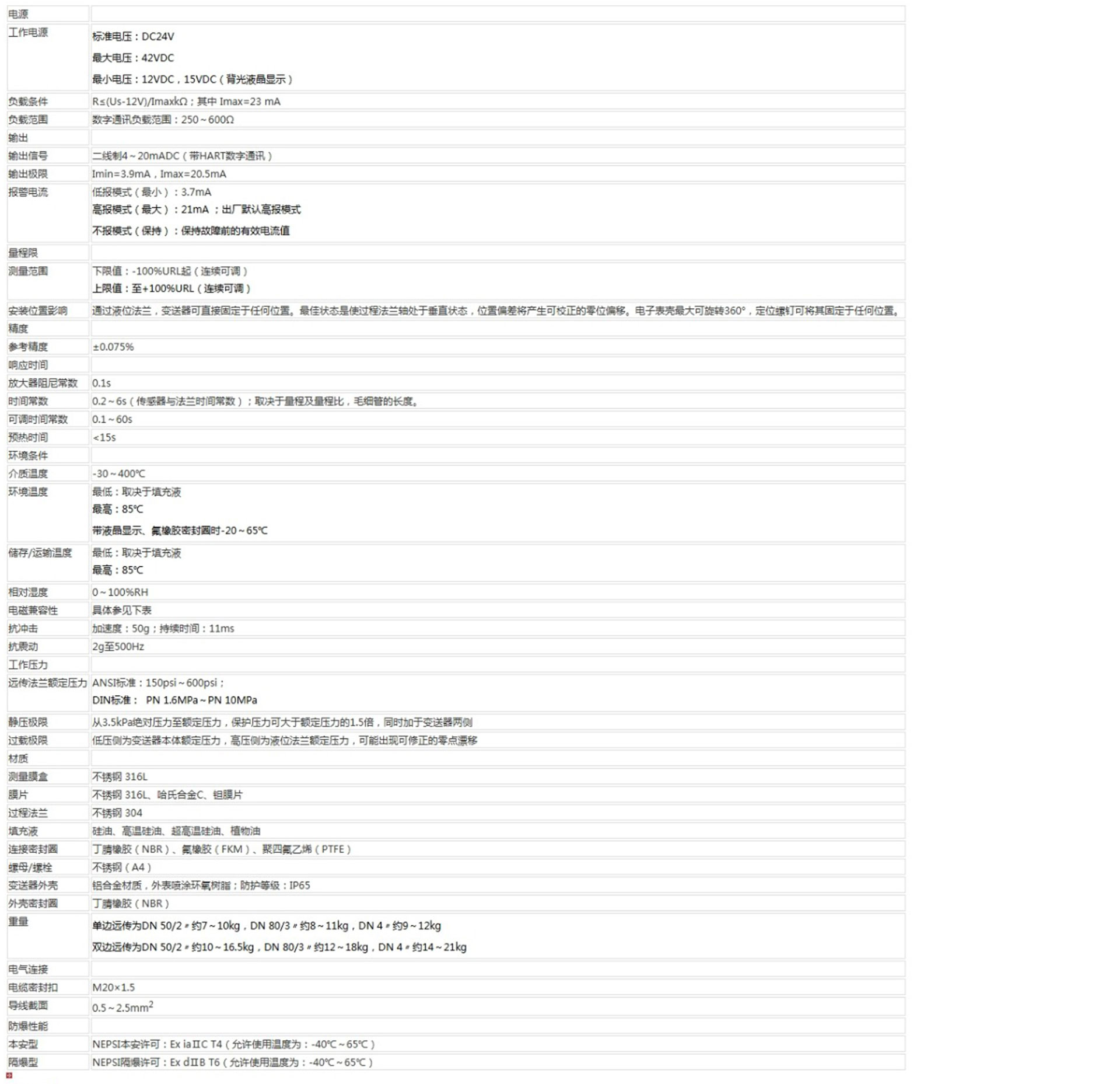 該產品用於測量液體、氣體或蒸汽的液位、密度、壓力,將其轉變成4~20mA (HART)電流輸出信號,可通過RST375手持終端對它們進行參數設定、過程監控等。測量範圍(未遷移時)為0-1kPa~2MPa,液位法蘭的額定壓力分別為:1.6/4MPa、6.4MPa、10MPa、150psi、300psi或600psi。