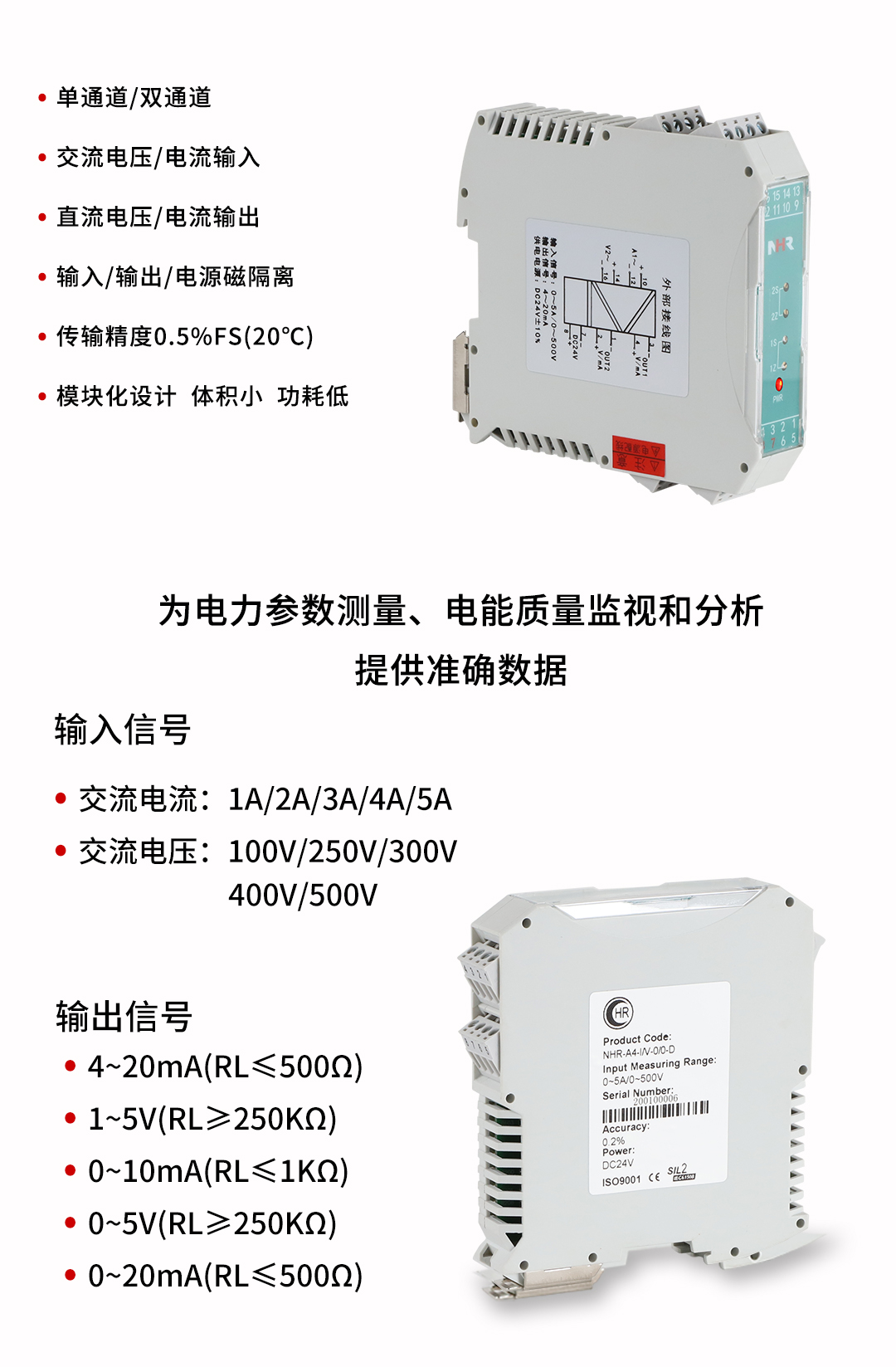 虹潤公司是專業生產電流傳感器的國家專精特新“小巨人”企業。生產的簡易型電量變送器,具有交流電壓電流輸入,傳輸精度高,響應時間快,輸入輸出電源磁隔離,體積小功耗低等特點。產品獲得基於一種交流信號變送器、交直流信號轉換電路、基於DCS技術的盤裝式三相電量表等3項國家發明專利,主持起草工業過程控製係統用模擬輸入兩位或多位輸出儀表國家標準,直流漏電流傳感器規範、通信係統多通道數據采集控製終端規範等2項軍用標準,以及現場設備集成等5項智能製造國家標準,參與國際5G標準製定。產品廣泛應用於電力、冶金、化工、水泥、造紙、新能源、基礎設施等用電密集行業。